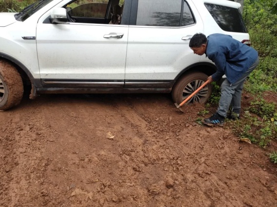 上(shàng)山(shān)下(xià₹↕₽♥)鄉(xiāng),山(shān)路(lù)™↕♥₽崎岖,交通(tōng)出行(xíng)也(yě)會(huì)©‍遇到(dào)一(yī)些(xiē)突發情況。6月(yuè)17日(rì),排查小(xiǎo)組成員(yuán),直管二部的(de)羅燚、王漢城(chéng)一(yī)行(xíng←>✘&)在前往上(shàng)村(cūn)路(lù)途γ™π♦中遇到(dào)暴雨(yǔ)。暴雨(yǔ)過後,山(shān)路(lù)泥濘不(bù)堪,車(chē)輛≈✔(liàng)陷入泥坑裡(lǐ),三四個(gè)人(rén)都(dōu)推不(bù)出來(lái),而所處位置偏遠(yuǎn),沒網、沒信号,聯系不(bù)✔γ∏∞到(dào)其他(tā)同伴,他(tā)們隻能(néng)在山(shān)上(shàng)呼喊求助。最終等到(dào)應聲而來(láβφφi)的(de)村(cūn)民(mín)一(yī)同把車(chē)推出。“我是(shì)駕齡好(hǎo)幾年(nián)€↕ δ的(de)‘老(lǎo)司機(jī)’了(le),但(d♠λ≤≠àn)是(shì)這(zhè)種幾十米一(yī)個(gè)彎的(de)泥路(l <‍ù)我開(kāi)到(dào)後背直冒汗”直管九部趙迪感歎道(dào)。