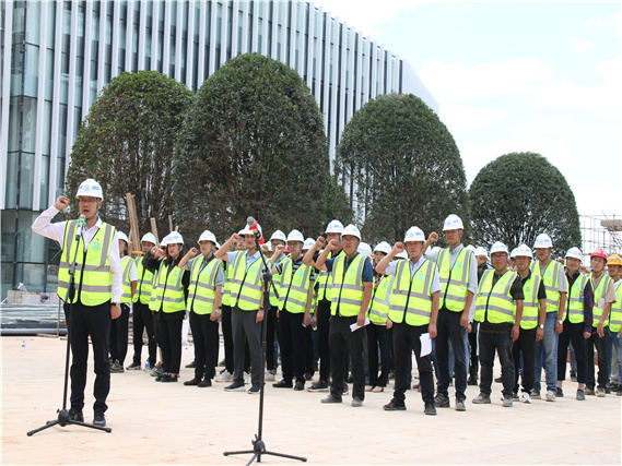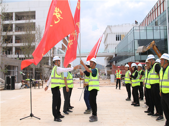 7月(yuè)21日(rì)下(xià)午,曲靖市(sh™↓₩ì)第一(yī)中學新校(xiào)區(qū)項目舉行(xíng)“奮戰20≥ε天、決勝‘8·10’目标節點”誓師(shī)大(σ÷★✘dà)會(huì)。建設、設計(jì)、監理(l♥εǐ)、施工(gōng)單位及勞務人(rén)員(yuán)代表共80餘人(rén)參會(huì)。公司黨委副書(shū)記、董事(shì)長(×₹cháng)馬利波,城(chéng)鄉(xiāng)投公司副總經理(lǐ)陳文(wén)傑,公司黨委委員(yuán)、副總經理(lǐ)、工(gōng)會(huì)主席胡代蓉,副總經理(lǐ)、策劃總監餘紹彪出席誓師(shī)大(dà)會(huì)。