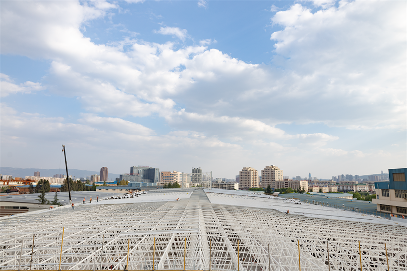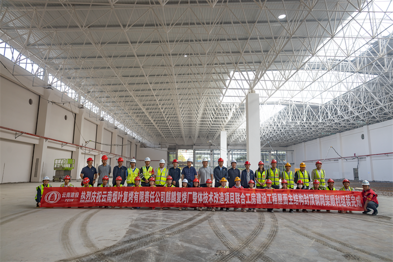 雲南(nán)煙(yān)葉複烤有(yǒu)限責任公司麒麟複烤廠(chǎng)整體(tǐ)技(j↑™"®ì)術(shù)改造項目聯合工(gōng)房(fáng)建設工(gōng)程屋面主結構封頂
