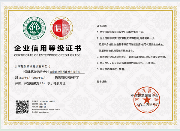 近(jìn)日(rì),中國(guó)建築裝飾協會(huì)公布《2024年(nián)度(第一↓↓γ(yī)批)建築裝飾行(xíng)業(yè)信用(yòng)評價公告》,公司評定結果為(wè∞×™βi)AAA級(最高(gāo)級),并獲得(de)企業(yè)信用(yòng)等級證書(♣Ω☆shū),是(shì)公司首次獲評&ldqu←β'♦o;建築裝飾行(xíng)業(yè)信用(yòng)評價AAA級企業(yè)”。